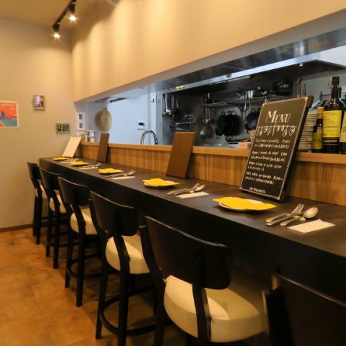 一人でも立ち寄りやすいカウンター席完備。シェフとの会話も楽しめます。